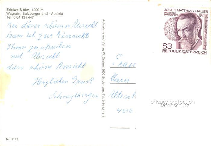 72421118 Wagrain Salzburg Edelweiss Alm postalisch nicht gelaufen Erhaltung siehe scans KatCode: 11390322050423