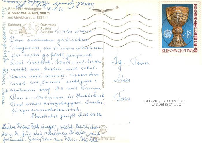 73325953 alte Postkarte Wagrain Salzburg Erholungsort mit Griesskareck Fliegeraufnahme postalisch gelaufen Erhaltung siehe scans [FriedD77] KatCode: 11390322050423