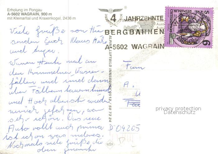 73047912 alte Postkarte Wagrain Salzburg Fliegeraufnahme Kleinarltal Kraxenkogel postalisch gelaufen Erhaltung siehe scans [KathaD81] KatCode: 11390322050423