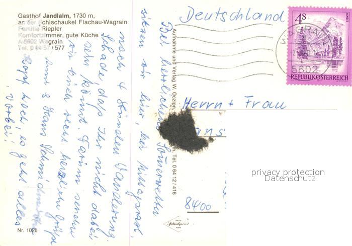 73047911 alte Postkarte Wagrain Salzburg Gasthof Jandlalm postalisch gelaufen Erhaltung siehe scans [KathaD81] KatCode: 11390322050423