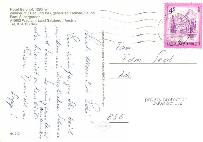 12603952 alte Postkarte Wagrain Salzburg Hotel Berghof Skigebiet postalisch gelaufen Erhaltung siehe scans [LiesaD40] KatCode: 11390322050423