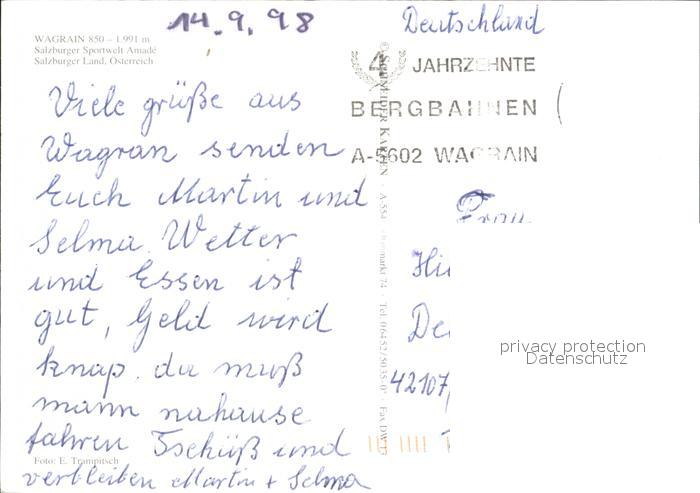 72430273 alte Postkarte Wagrain Salzburg J?gersee Ortsansicht postalisch gelaufen Erhaltung siehe scans KatCode: 11390322050423