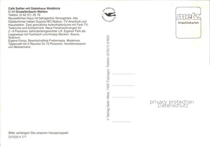 72459924 Wahlen Odenwald Cafe Sattler mit Gaestehaus Waldblick Gastraum Zimmer Park Panorama postalisch nicht gelaufen Erhaltung siehe scans KatCode: 11110006431009