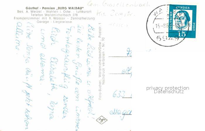 32658646 alte Postkarte Wahlen Odenwald Gasthaus Pension Burg Waldau postalisch gelaufen Erhaltung siehe scans [AndreD76] KatCode: 11110006431009
