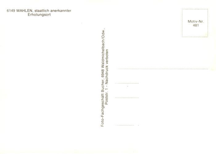 73875137 Wahlen Odenwald Panorama Erholungsort Gedenkstein postalisch nicht gelaufen Erhaltung siehe scans [FriedD77] KatCode: 11110006431009