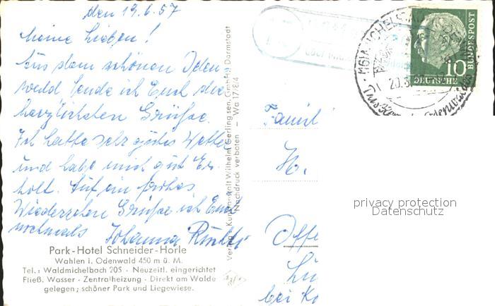 72096817 alte Postkarte Wahlen Odenwald Parkhotel Schneider Horle postalisch gelaufen Erhaltung siehe scans KatCode: 11110006431009