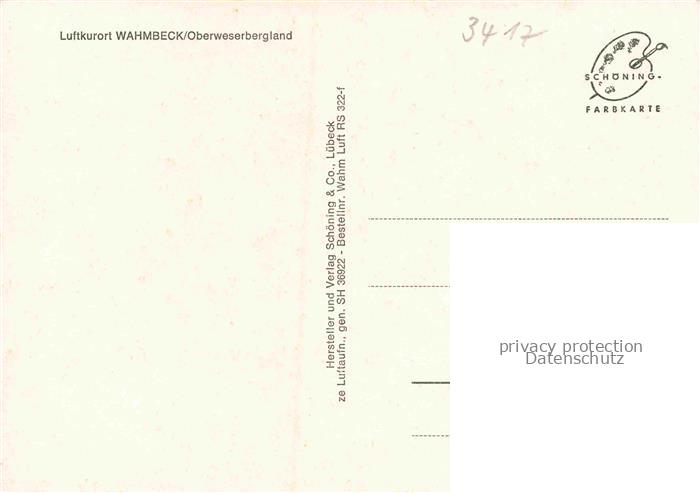 74122045 Wahmbeck Oberweser Nordhessen Fliegeraufnahme postalisch nicht gelaufen Erhaltung siehe scans [WerneD78] KatCode: 11110006633021
