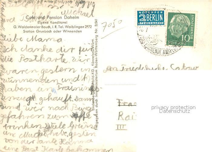 73749584 alte Postkarte Waiblingen Rems Cafe und Pension Daheim postalisch gelaufen Erhaltung siehe scans [WerneD78] KatCode: 11110008119079