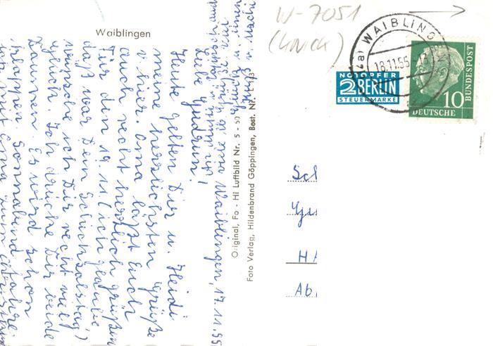 73887063 alte Postkarte Waiblingen Rems Fliegeraufnahme postalisch gelaufen Erhaltung siehe scans [FriedD77] KatCode: 11110008119079