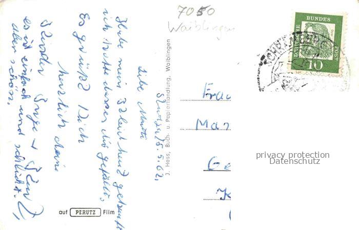 74055414 alte Postkarte Waiblingen Rems Teilansichten Panorama Kirche Rathaus postalisch gelaufen Erhaltung siehe scans [WerneD78] KatCode: 11110008119079