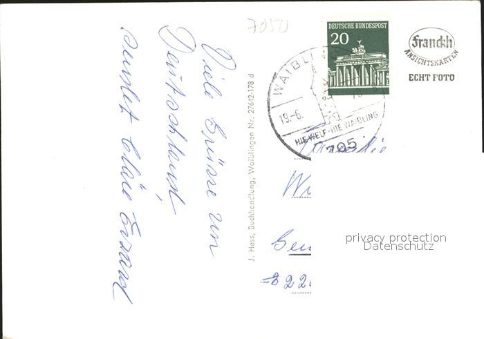 72024176 alte Postkarte Waiblingen Teilansichten Tor Metzgerei Muelle postalisch gelaufen Erhaltung siehe scans KatCode: 11110008119079