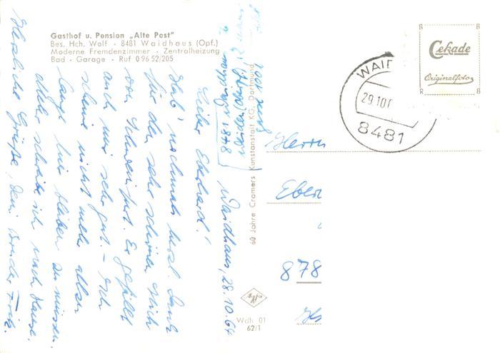 73876701 alte Postkarte Waidhaus Oberpfalz Bayern Gasthof Pension Alte Post Gastraeume postalisch gelaufen Erhaltung siehe scans [FriedD77] KatCode: 11110009374164