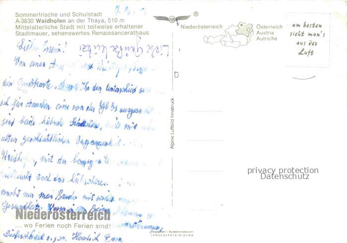 74100541 alte Postkarte Waidhofen Thaya Fliegeraufnahmen postalisch gelaufen Erhaltung siehe scans [FriedD77] KatCode: 11390124032220