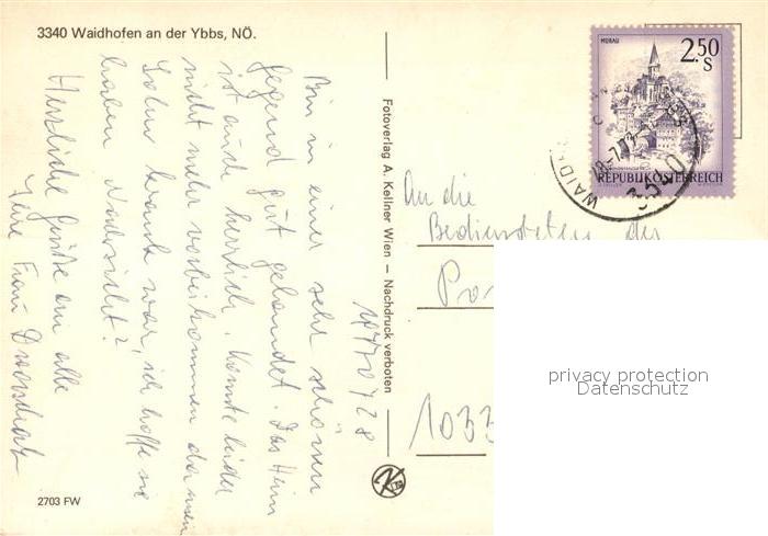 73269237 alte Postkarte Waidhofen Ybbs Kirche Schloss postalisch gelaufen Erhaltung siehe scans [KathaD81] KatCode: 11390121030301