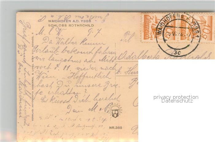 43078493 alte Postkarte Waidhofen Ybbs Schloss Rothschild postalisch gelaufen Erhaltung siehe scans [WerneD78] KatCode: 11390121030301