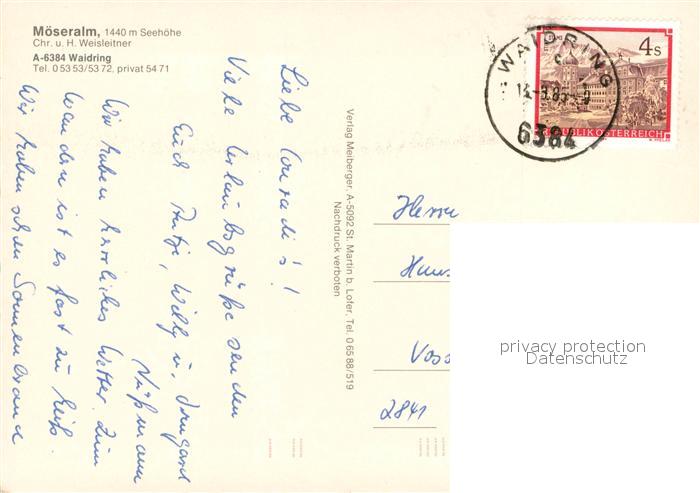 73618161 alte Postkarte Waidring Tirol Alpengasthof Moeseralm postalisch gelaufen Erhaltung siehe scans [WerneD78] KatCode: 11390335070419