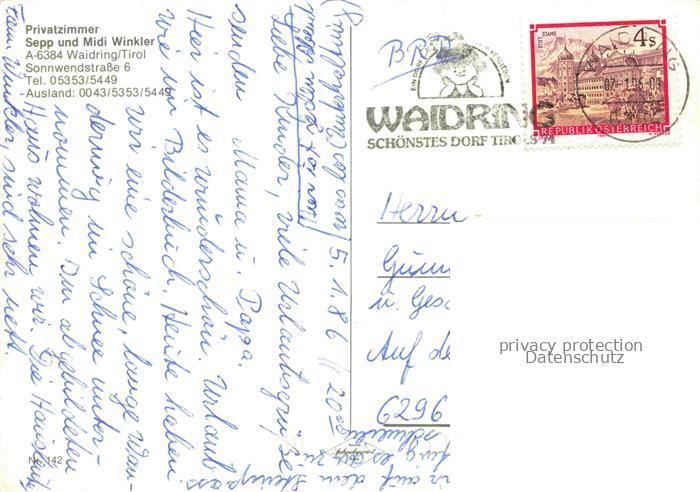 74075378 alte Postkarte Waidring Tirol AT Privatzimmer Winkler postalisch gelaufen Erhaltung siehe scans [WerneD78] KatCode: 11390335070419