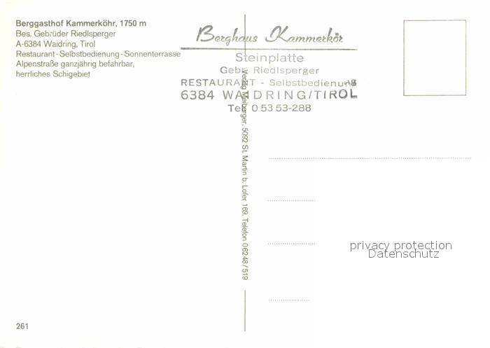 72814352 Waidring Tirol Berghaus Kammerkoehr postalisch nicht gelaufen Erhaltung siehe scans [AndreD76] KatCode: 11390335070419