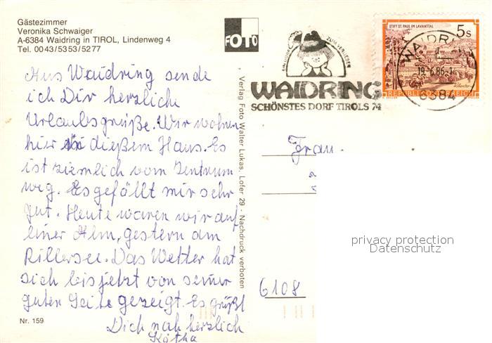 13233156 alte Postkarte Waidring Tirol Gaestezimmer Veronika Scvhwaiger postalisch gelaufen Erhaltung siehe scans [NatalD47] KatCode: 11390335070419