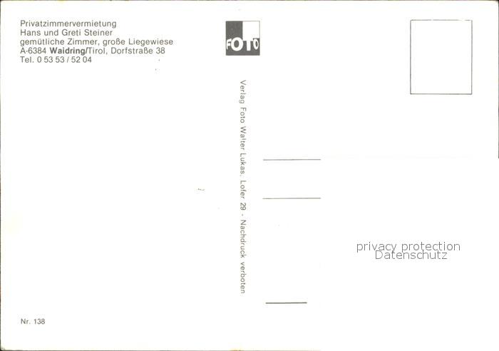 11923600 Waidring Tirol Haus Steiner postalisch nicht gelaufen Erhaltung siehe scans KatCode: 11390335070419