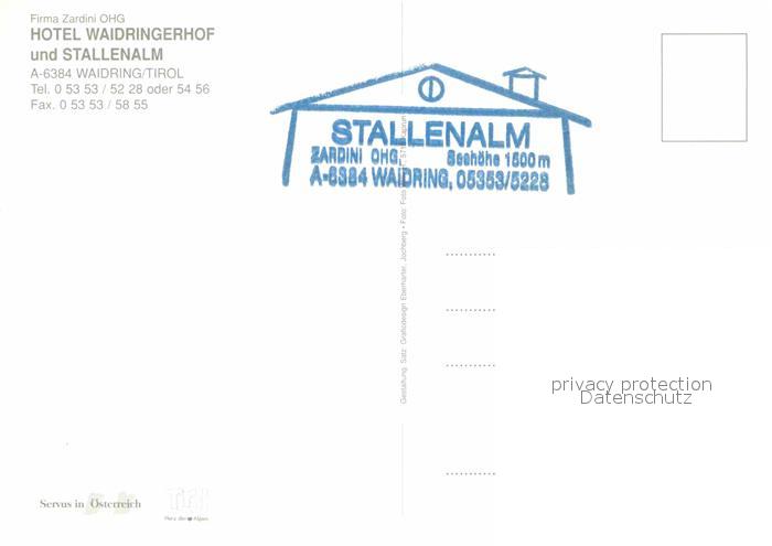 72717588 Waidring Tirol Hotel Waidringerhof und Stallenalm postalisch nicht gelaufen Erhaltung siehe scans [LiesaD40] KatCode: 11390335070419