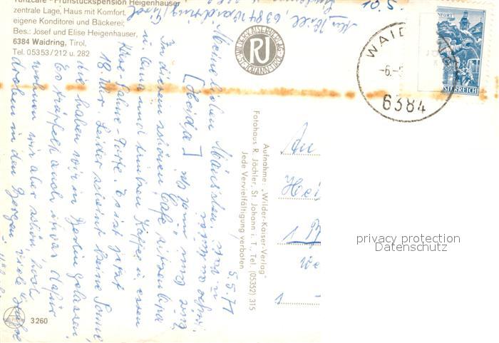 12975345 alte Postkarte Waidring Tirol Konditorei-Cafe Heigenhauser postalisch gelaufen Erhaltung siehe scans [NatalD47] KatCode: 11390335070419