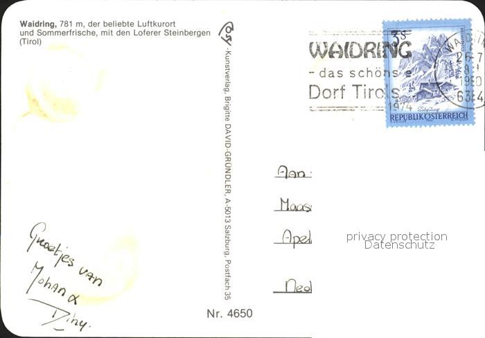 72092307 alte Postkarte Waidring Tirol mit Loferer Steinbergen postalisch gelaufen Erhaltung siehe scans KatCode: 11390335070419
