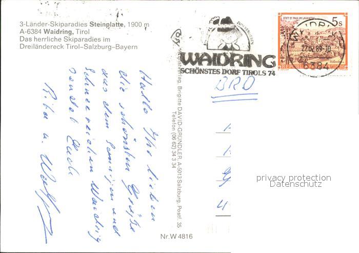 71939072 alte Postkarte Waidring Tirol Ortsansicht Skiparadies Steinplatte postalisch gelaufen Erhaltung siehe scans KatCode: 11390335070419