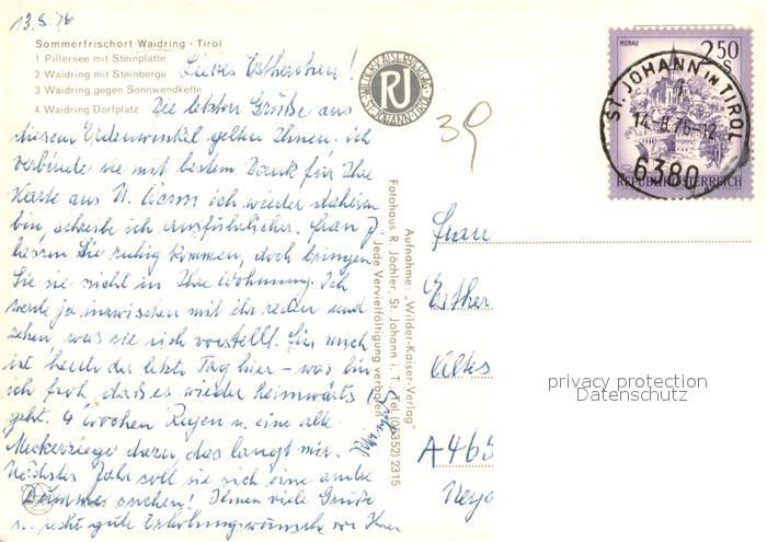 73628967 alte Postkarte Waidring Tirol Pillersee mit steinplatte Waidring mit Steinberge Sonnwendkette und Dorfplatz postalisch gelaufen Erhaltung siehe scans [WerneD78] KatCode: 11390335070419