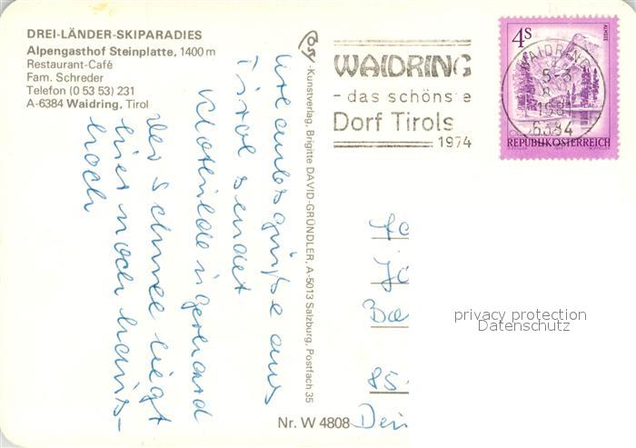 73516906 alte Postkarte Waidring Tirol Skiparadies Steinplatte Winter postalisch gelaufen Erhaltung siehe scans [KathaD81] KatCode: 11390335070419