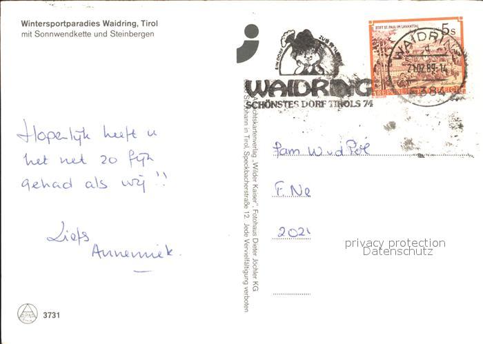 71981944 alte Postkarte Waidring Tirol Sonnwendkette Steinbergen postalisch gelaufen Erhaltung siehe scans KatCode: 11390335070419