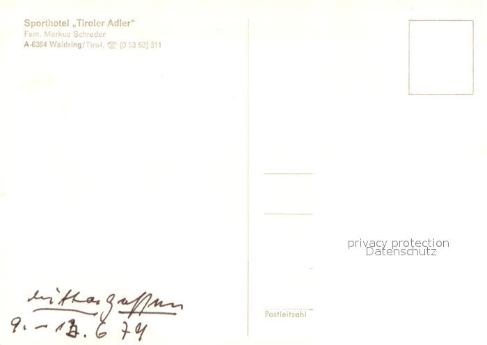 73629475 Waidring Tirol Sporthotel Tiroler Adler postalisch nicht gelaufen Erhaltung siehe scans [FriedD77] KatCode: 11390335070419