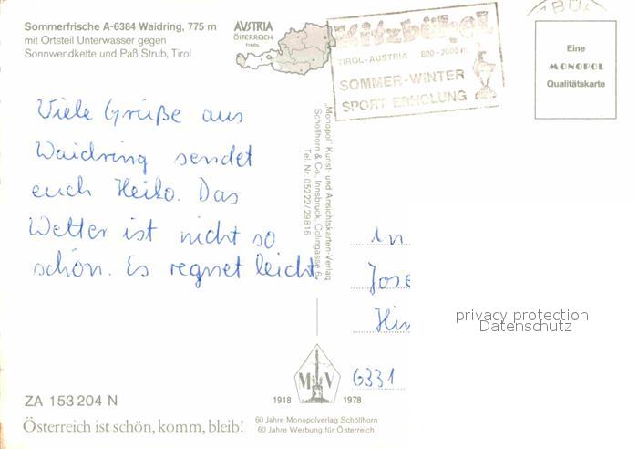 72848313 alte Postkarte Waidring Tirol Unterwasser Sonnwendkette Pass Strub postalisch gelaufen Erhaltung siehe scans [KathaD81] KatCode: 11390335070419