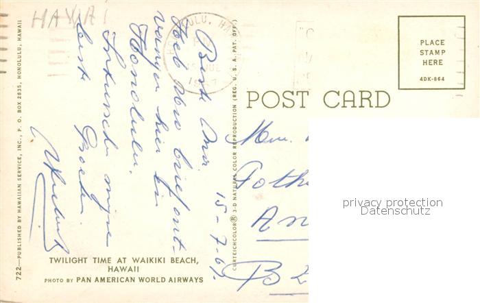 72948622 old postcard Waikiki postalisch gelaufen Erhaltung siehe scans [NatalD47] KatCode: 14140130000000