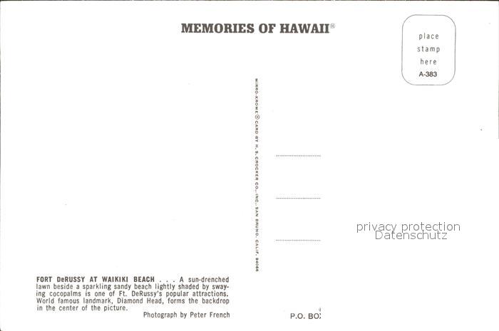 71820624 Waikiki Beach Fort DeRussy postalisch nicht gelaufen Erhaltung siehe scans KatCode: 14140130000000