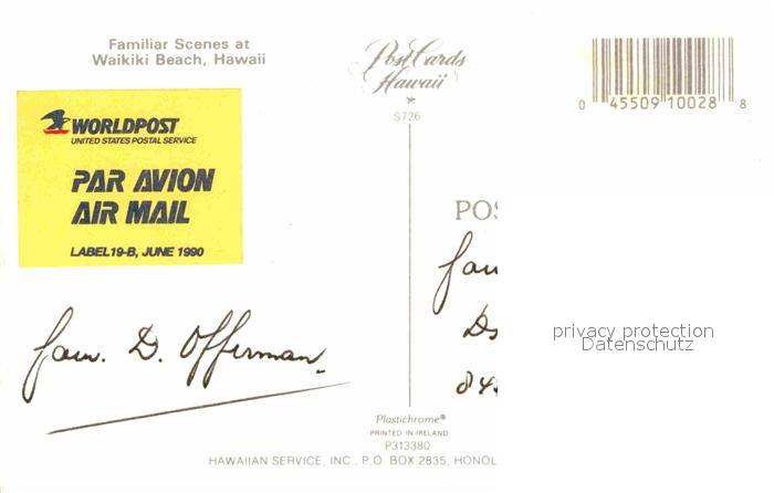 72825006 Waikiki Beach Hawai postalisch nicht gelaufen Erhaltung siehe scans [LiesaD40] KatCode: 14140130000000