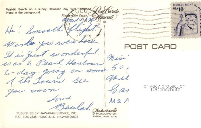 73080019 old postcard Waikiki Beach Hotels Mountains Diamond Head postalisch gelaufen Erhaltung siehe scans [FriedD77] KatCode: 14140130000000