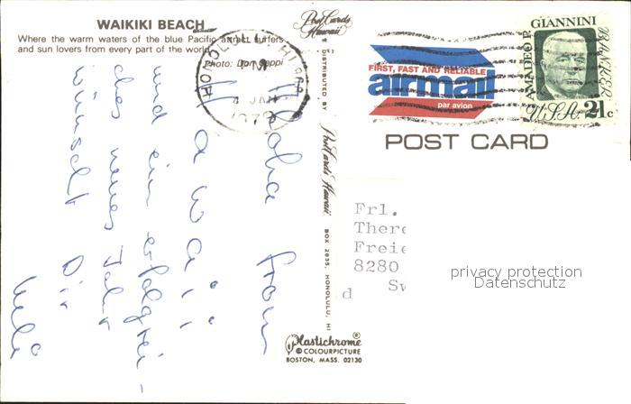 11693844 old postcard Waikiki Beach Palm Trees postalisch gelaufen Erhaltung siehe scans KatCode: 14140130000000