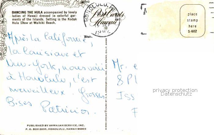 72688803 old postcard Waikiki Dancing the Hula Kodak Hula Show at Waikiki Beach postalisch gelaufen Erhaltung siehe scans [FriedD77] KatCode: 14140130000000