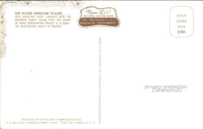 71925828 Waikiki Hilton Hawaiian Village Fliegeraufnahme postalisch nicht gelaufen Erhaltung siehe scans KatCode: 14140130000000