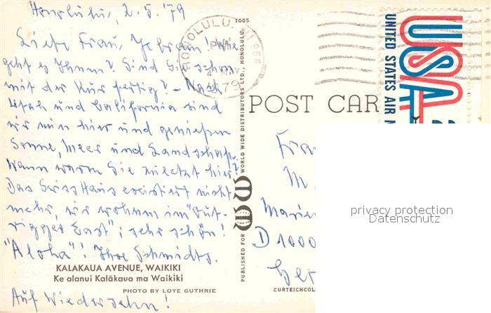 72759503 old postcard Waikiki Kalakaua Avenue postalisch gelaufen Erhaltung siehe scans [LiesaD40] KatCode: 14140130000000