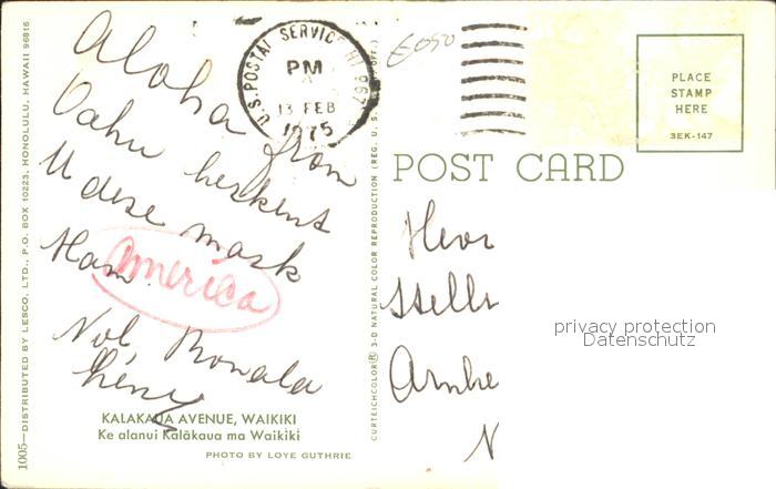 72298821 old postcard Waikiki Kalakaua Street postalisch gelaufen Erhaltung siehe scans KatCode: 14140130000000