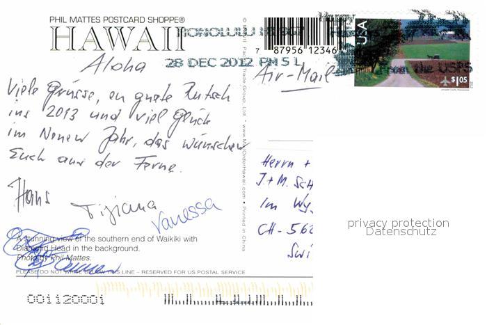 72715837 old postcard Waikiki Luftaufnahme Strand postalisch gelaufen Erhaltung siehe scans [KathaD79] KatCode: 14140130000000