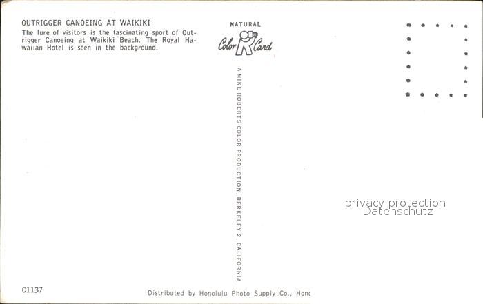 72462650 Waikiki Outrigger Candeing postalisch nicht gelaufen Erhaltung siehe scans KatCode: 14140130000000