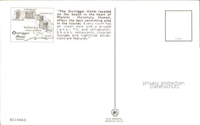 71967544 Waikiki Outrigger Hotel postalisch nicht gelaufen Erhaltung siehe scans KatCode: 14140130000000