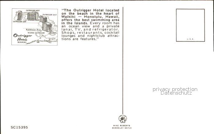 71941893 Waikiki Outrigger Hotel Badenixe postalisch nicht gelaufen Erhaltung siehe scans KatCode: 14140130000000