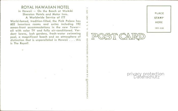 72167245 Waikiki Royal Hawaiian Hotel postalisch nicht gelaufen Erhaltung siehe scans KatCode: 14140130000000