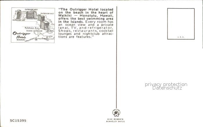 72330436 Waikiki The Outrigger Hotel postalisch nicht gelaufen Erhaltung siehe scans KatCode: 14140130000000