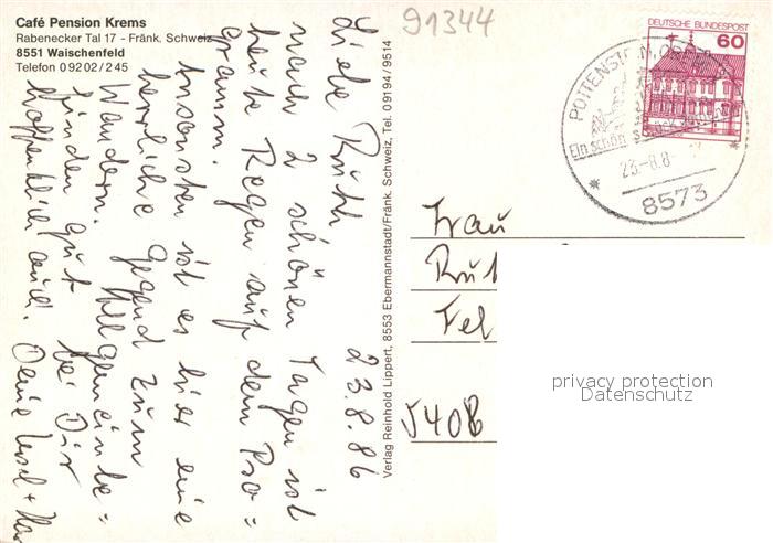 72961329 alte Postkarte Waischenfeld Cafe Pension Krems postalisch gelaufen Erhaltung siehe scans [WerneD78] KatCode: 11110009472197