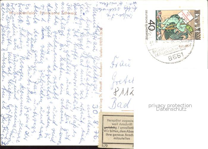 71991541 alte Postkarte Waischenfeld Fliegeraufnahme postalisch gelaufen Erhaltung siehe scans KatCode: 11110009472197